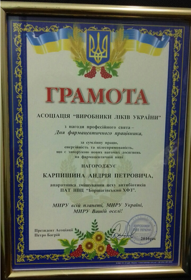 Почесними грамотами від Асоціації «Виробників ліків України» були нагороджені кращі працівники