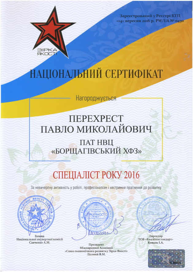 Home / Media Centre / Company News / Нагороди працівників ПАТ НВЦ "Борщагівський ХФЗ"