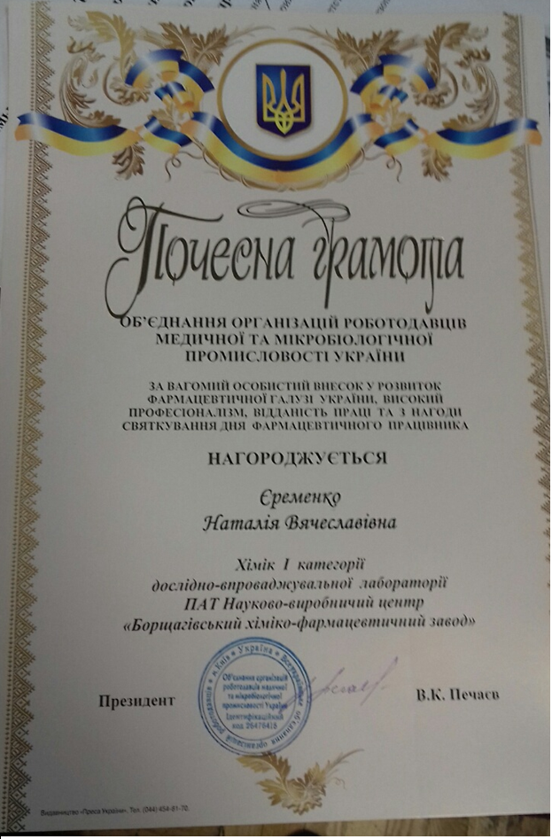 Почесними грамотами від Об'єднання організацій роботодавців медичної та мікробіологічної