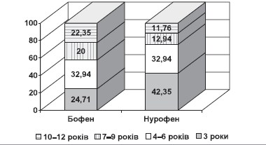 Саме тому нами проведено клінічне порівняльне дослідження фармакологічного ефекту препаратів «Бофен» (суспензія оральна 100 мг/5 мл, ЗАТ НВЦ «Борщагівський ХФЗ») і «Нурофен для дітей» (суспензія для перорального застосування, 100 мг/5 мл, «Boots Healthcare International») [3].