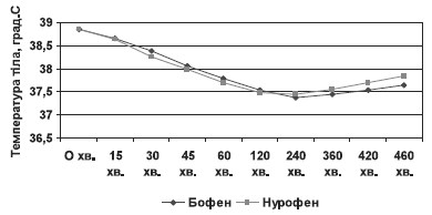 Аналогічним було і максимальне зниження температури після першого прийому препаратів: при прийомі «Бофену» — 1,65°С і «Нурофену для дітей» — 1,62°С.