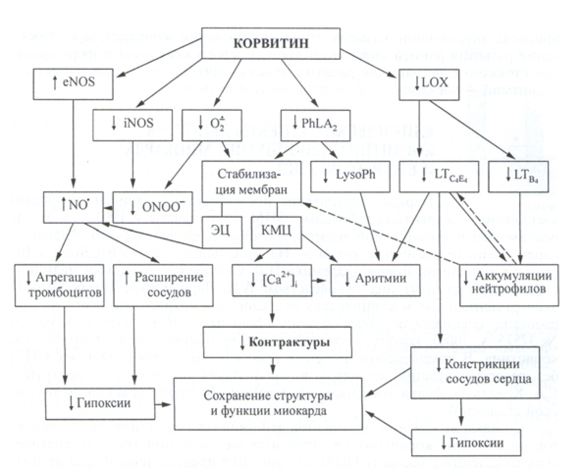 Малюнок 1 – механізми дії Корвітина [Мойбенко А.А., 2008]